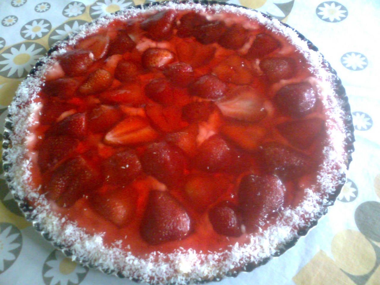 Una vez todo hecho y frío, colocamos la chantilly dentro de la tarta, cubriendo en forma pareja toda la tarta. Colocamos las frutillas bien alineadas, formando una combinación linda y armoniosa, Cubrimos con cuidado con la gelatina. Dejamos una hora en la heladera y espolvoreamos el borde con coco rallado. Dejamos en la heladera hasta servir. Glup!