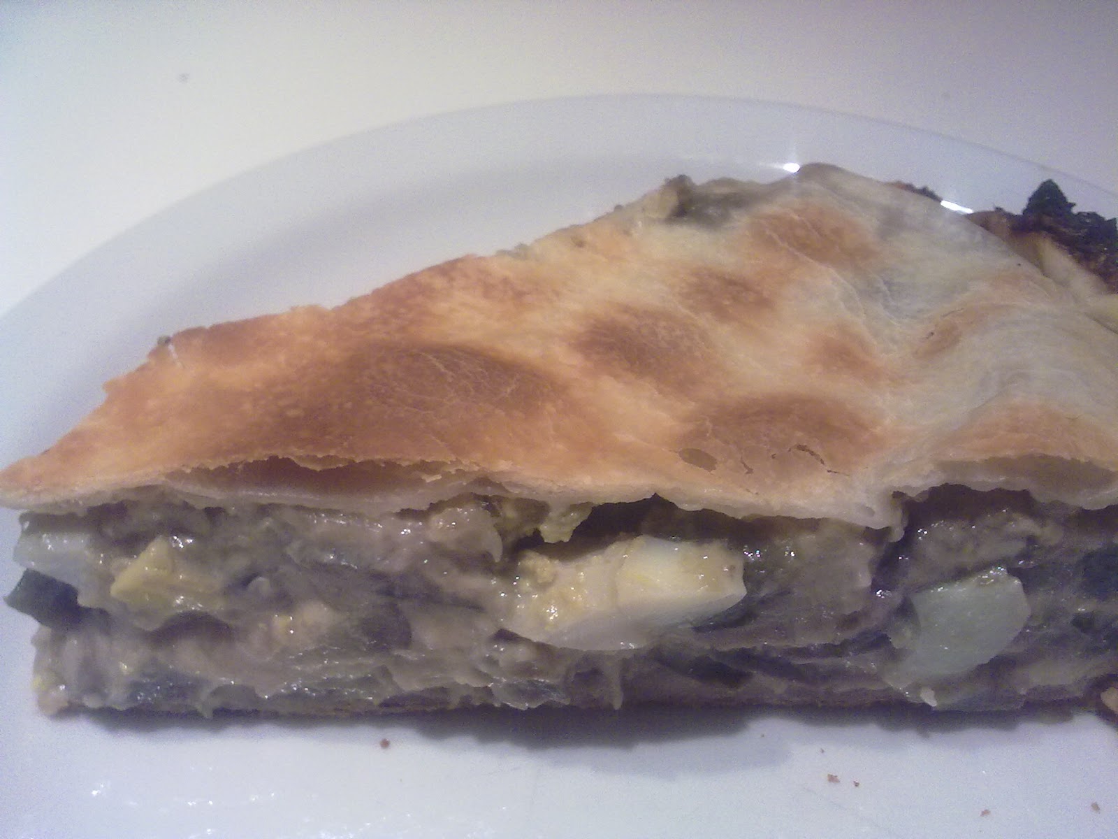 Cortar dos cebollas mas bien chiquito y dorarlas ligeramente en un poco de aceite. Una vez que comienzan a transparentar, agregar 2 o 3 cucharadas soperas de azúcar y continuar dorando otro poco. Agregar 4 o 5 berenjenas (depende el tamaño de las mismas y del molde), cortadas en cubitos medianos. Revolver esto y agregar sal y pimienta a gusto. Bajar el fuego y tapar. Dejar unos 15 minutos hasta que estén tiernas. Retirar, dejar enfriar un poco. Agregar 50 gramos de queso rallado y dos cucharadas de Casancrem (optativos ambos). Aceitar un molde espolvorearlo con pan rallado, colocar una tapa de pascualina (yo uso criolla o con semillas, puede ser cualquiera) colocar el relleno. Se puede agregar huevos duros, mozzarella, por salut o cremoso. Luego cubrir con la otra tapa, pinchar, hacer un agujerito en el medio del tamaño de una moneda de 10 centavos, aproximadamente para que no infle. Llevar a horno fuerte hasta dorar (si se quiere, se puede pintar con huevo o aceite). Al sacarla, dejarla reposar unos 15 minutos. Glup!