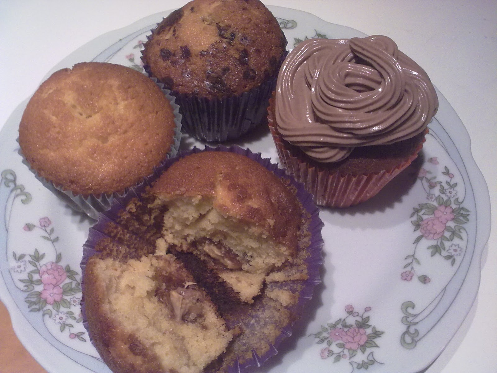 Ir agregando los secos a la mezcla anterior lentamente mientras se va intercalando con la leche. Batir bien y llevar a la heladera 1 hora. (Esto hace que leve mejor).Sacar a la hora y poner en pirotines, dentro de la muffinera y llevar a horno pre calentado, 180°, durante 20 minutos. Mientras que se cocinan, mantener refrigerada la mezcla. Salen unas 24 a 26 madalenas.