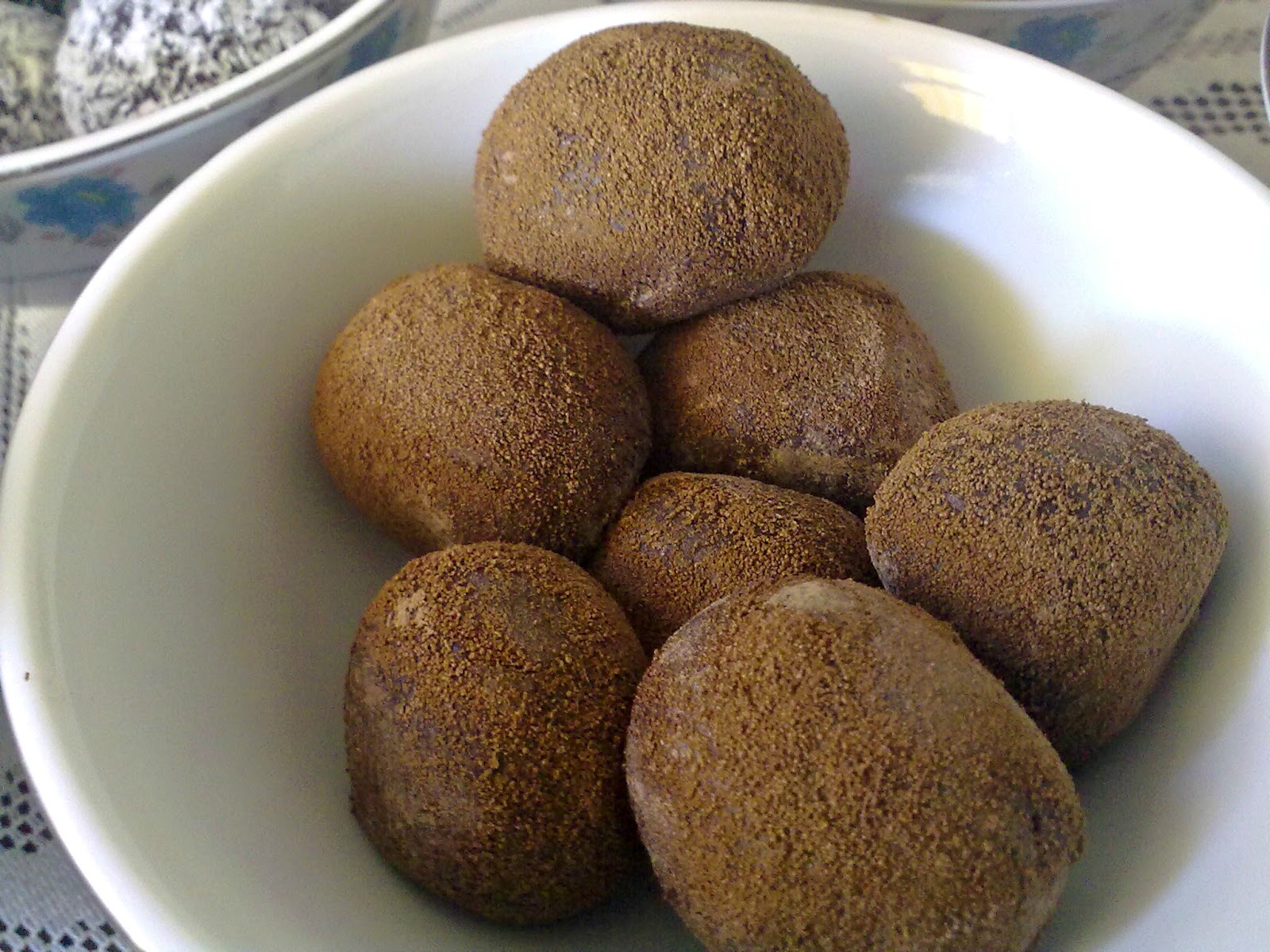 Un vez que tenemos las bolitas hechas las pasamos por cualquiera de los ingredientes elegidos para cubrir. A la heladera nuevamente y luego si queremos regalar, ponemos en pirotines de bombones y en caja. Si no a disfrutarlos así! Glup!