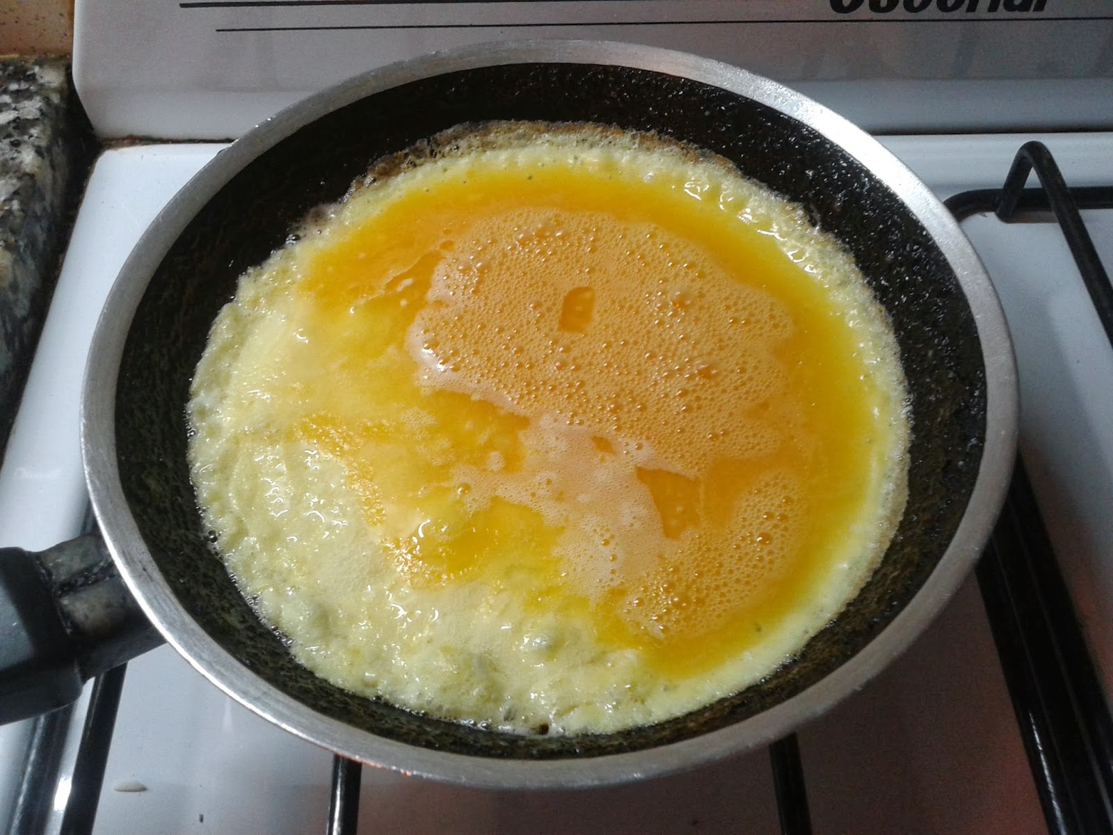 Una vez que esté bastante cuajado el huevo, con la ayuda de una espátula, darla vuelta rápidamente.