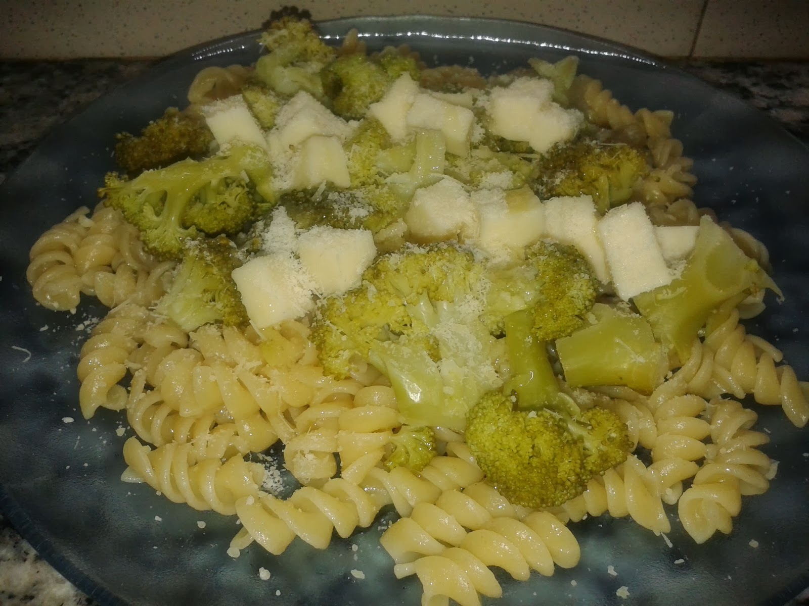 FUSILLI Y BRÓCCOLI ALL'OLIO E DUE FORMAGGI (FIDEOS CON BRÓCOLI)Y QUESOS)