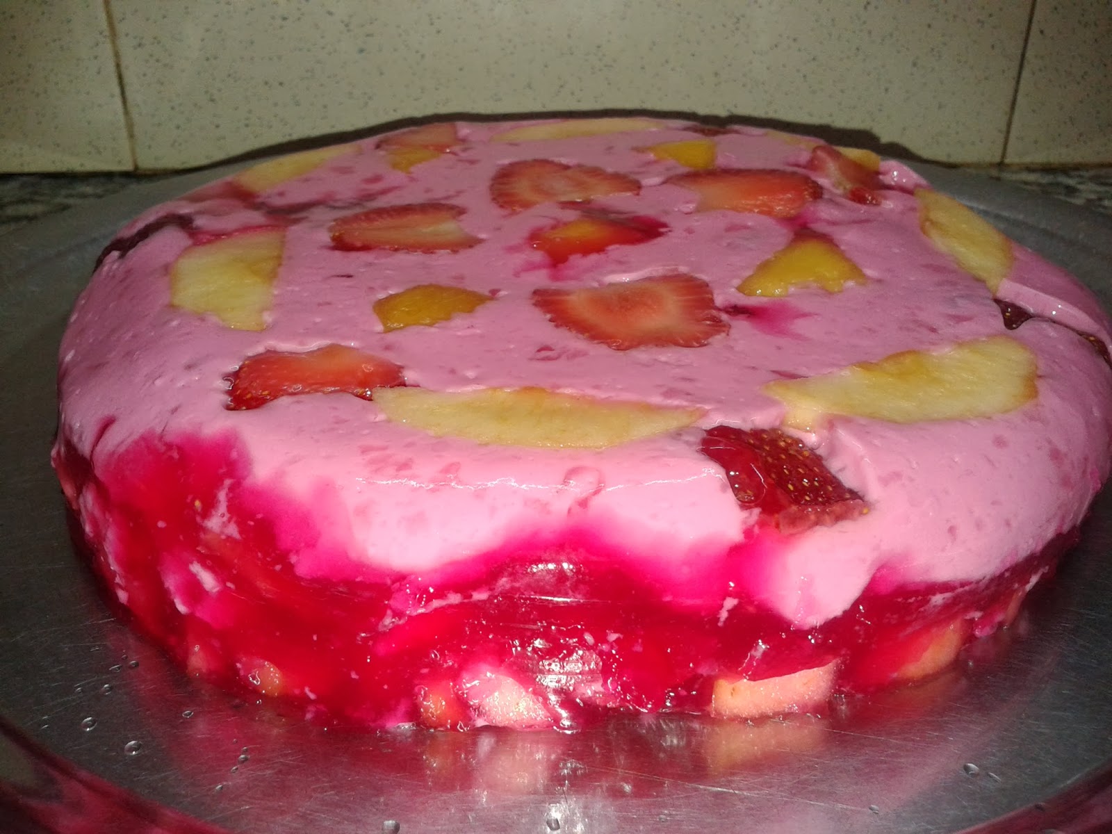 Luego de media hora vuelcan la preparación que contiene las frutas sobre la que tiene la crema. Parece complicado pero es una pavada. Solo lleva tiempo. Al cabo de 2 o 3 horas estará listo para desmoldar. Yo prefiero decir tiempo de mas para que no se rompa en el desmolde.