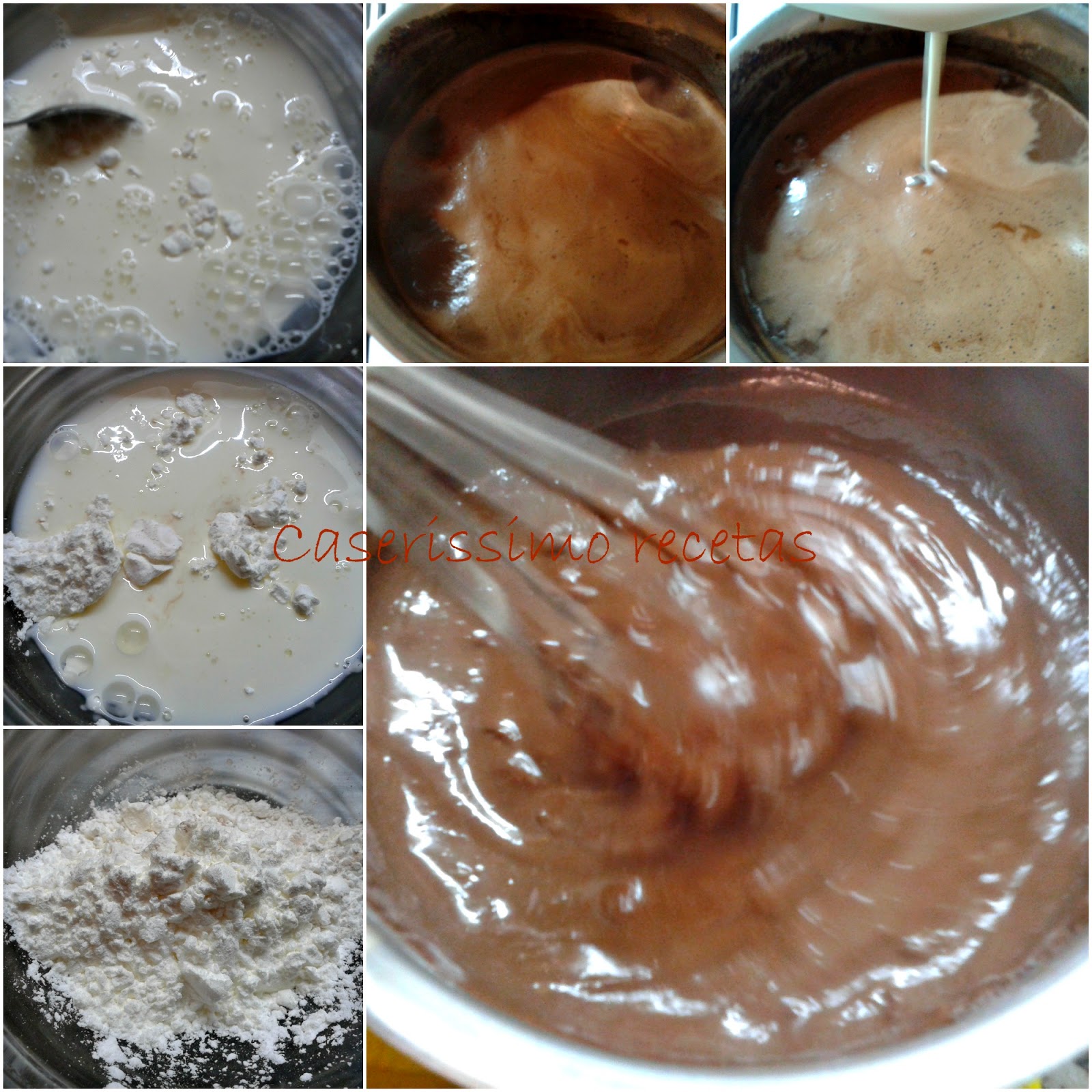 Luego mezclé aparte 30 gramos de almidón de maíz con los 50 cc de leche que me quedaron y lo disolví bien, Lo incorporé a la leche con el cacao cuando estaba a punto de hervir y batí rápidamente. Dejé que todo hirviera durante un minuto con el fuego a mínimo y revolviendo constantemente sin dejar de hacerlo!!! Apagué el fuego y aparté de la hornalla. Cubrí inmediatamente la superficie con un plástico separador para freezer y dejé que bajara la temperatura un poco.