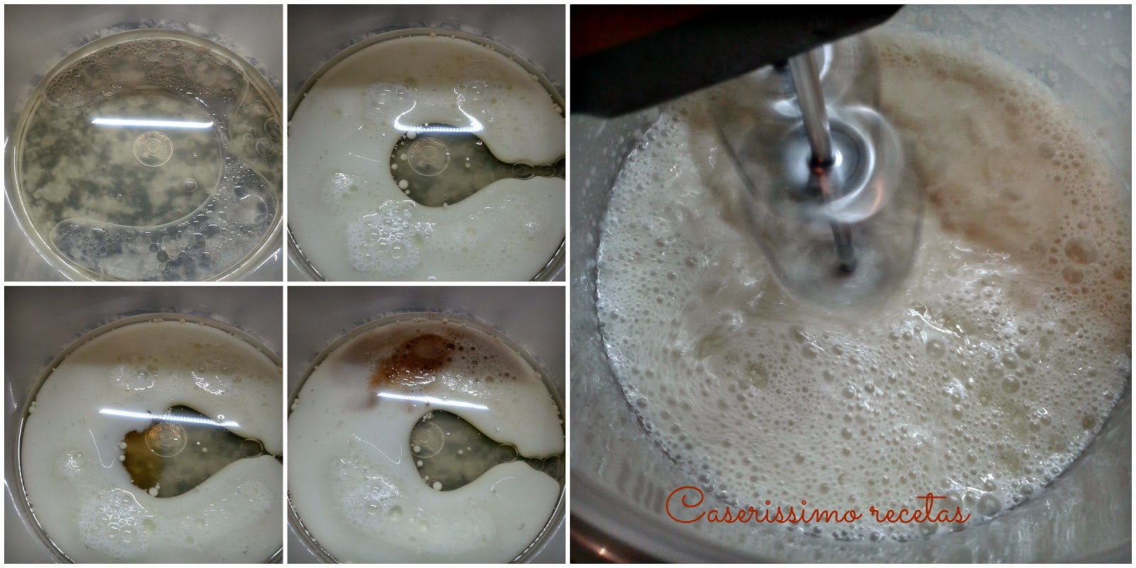 A continuación batimos hasta espumar los líquidos y de a poco vamos adicionando los secos.
