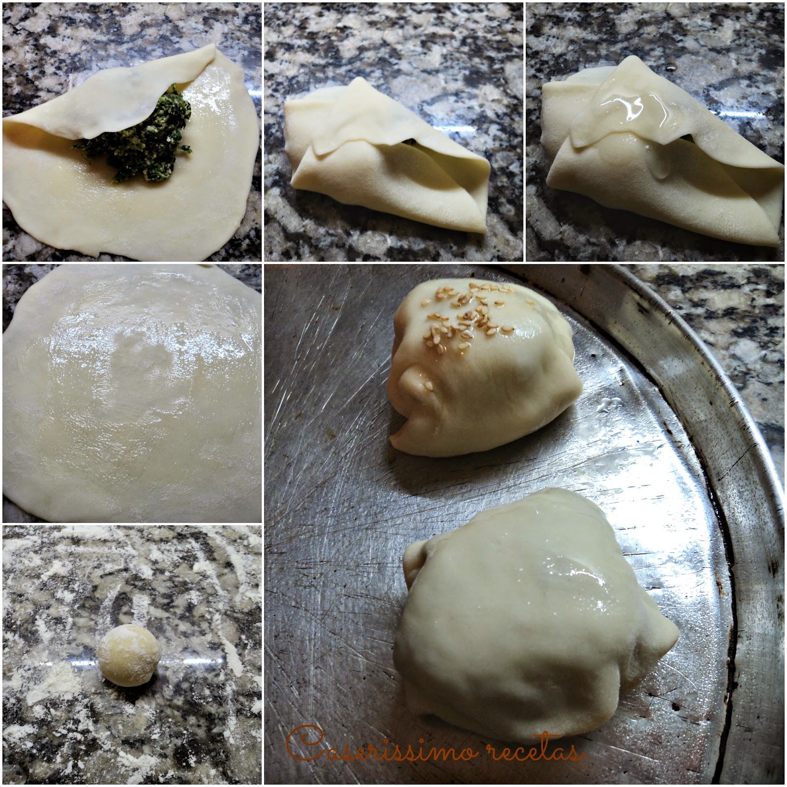 Iba a hacer los bohios de acelga sefaradíes, pero tenía espinaca y ya cocida, así que desistí e hice esta buena imitación. La verdad es que quedaron muy ricos y con un parecido a sus primos bohios. La masa que usé la tienen AQUÍ. No es la masa de bohios, pero quedó bastante aceptable. Iba a usar la masa de los Knishes, (me lo había sugerido Saúl, de El arte de amasar), pero la diferencia es el vinagre y la verdad es que quedaron bien igual. Saúl, siempre agradezco tu receta de los Knishes. son un manjar. 🙂 Y prometo ir a hacer algún taller, estando tan cerca!!!!!