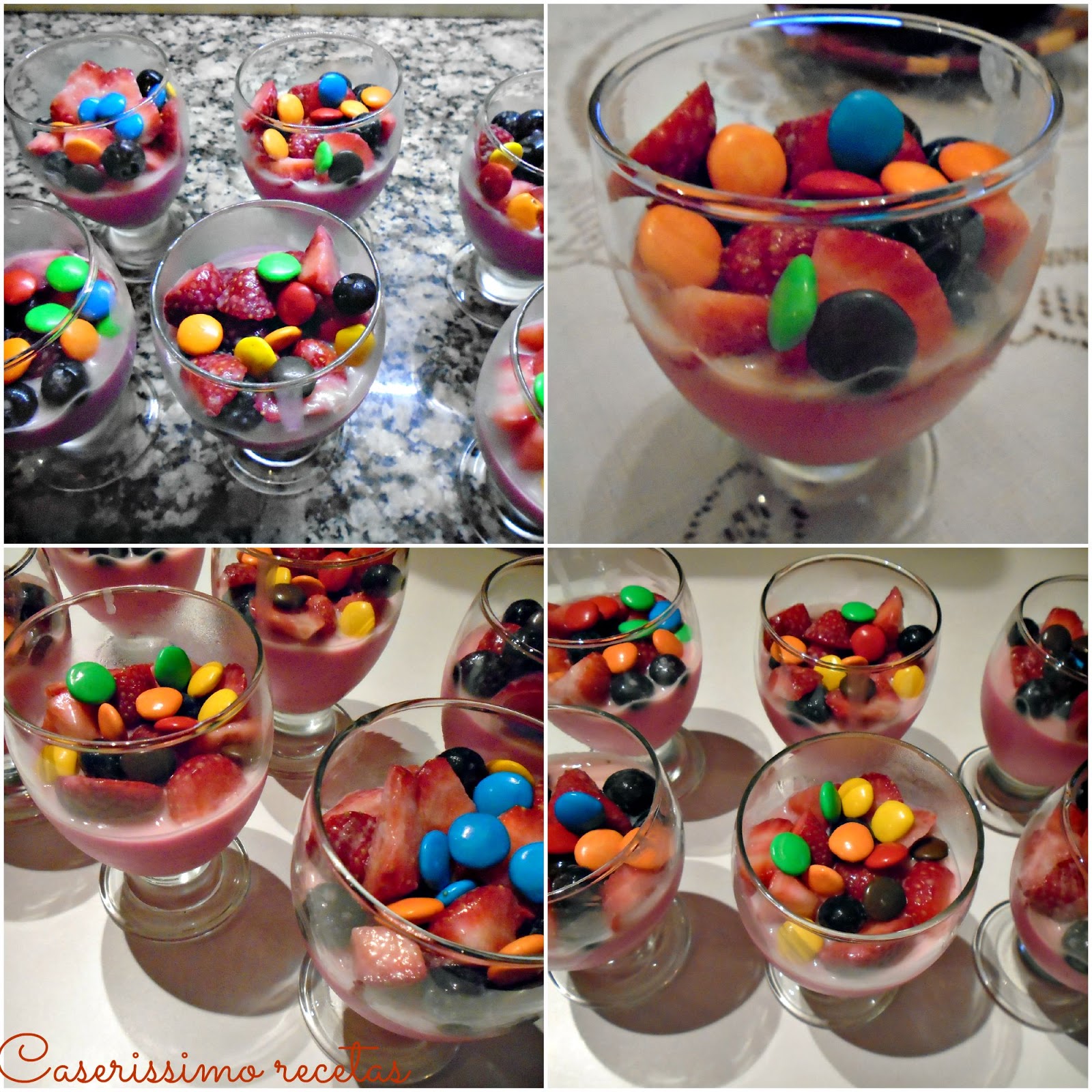 - 2 yogures de los que vienen con frutas en una especie de coulis (yo SER colchón de frutas de frutos rojos.) debe ser el yogur del mismo sabor que la gelatina.