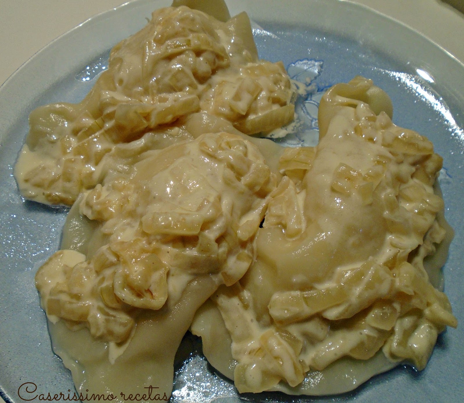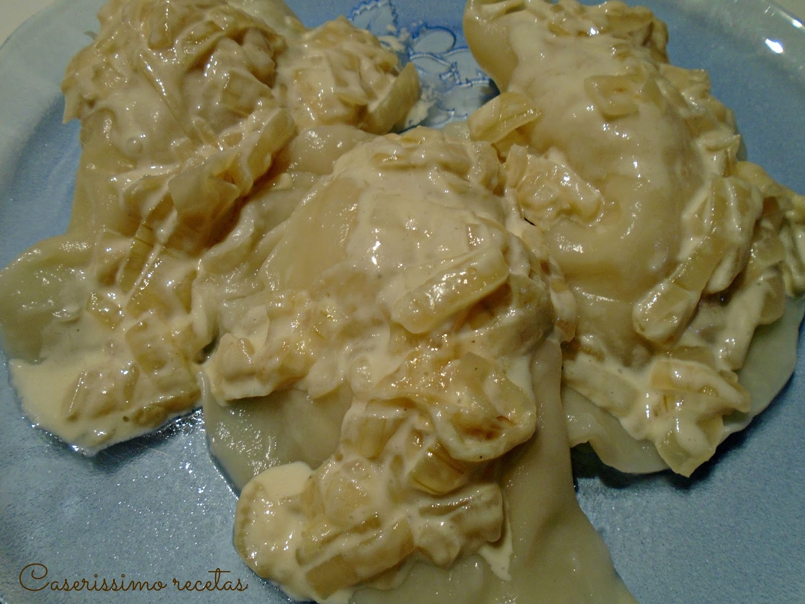 Que solo se pone papa y cebolla al relleno y cebolla sola a la salsa. Pero he visto en auténticas páginas judías tradicionales que agregan crema, así que como vi eso y Carlos me lo recomendó, aquí están con crema.