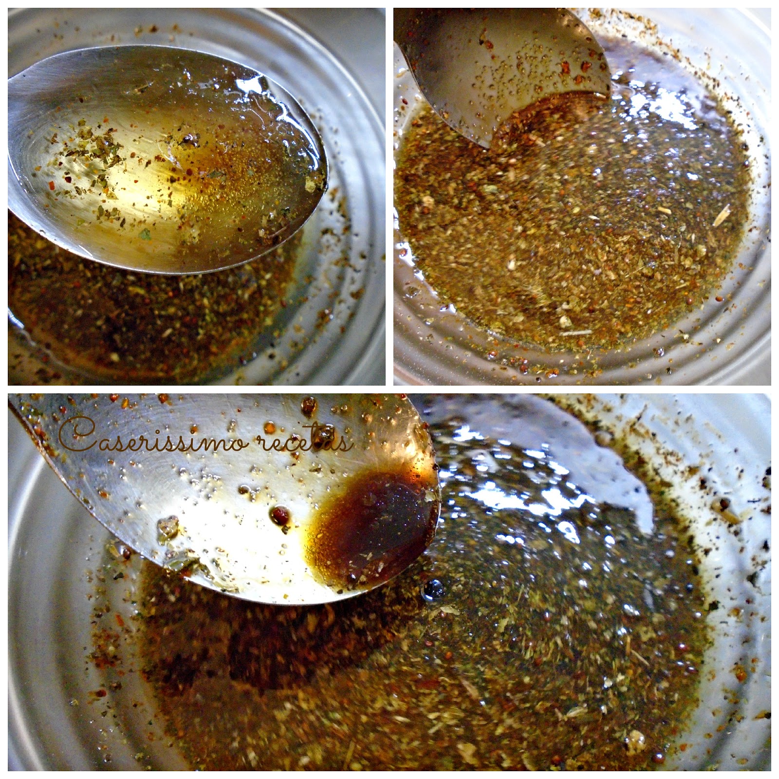 Colocamos en un bol mediano todas las especias y condimentos, en el orden que figuran en los ingredientes, siendo el último, el agua. Removemos bien y dejamos descansar unos 10 minutos.
