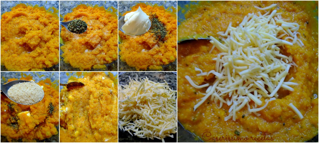 Luego de cocida, hacemos un puré y le agregamos la albahaca, la sal, el queso crema y un tercio del queso en hebras. Mezclamos e integramos bien todo.