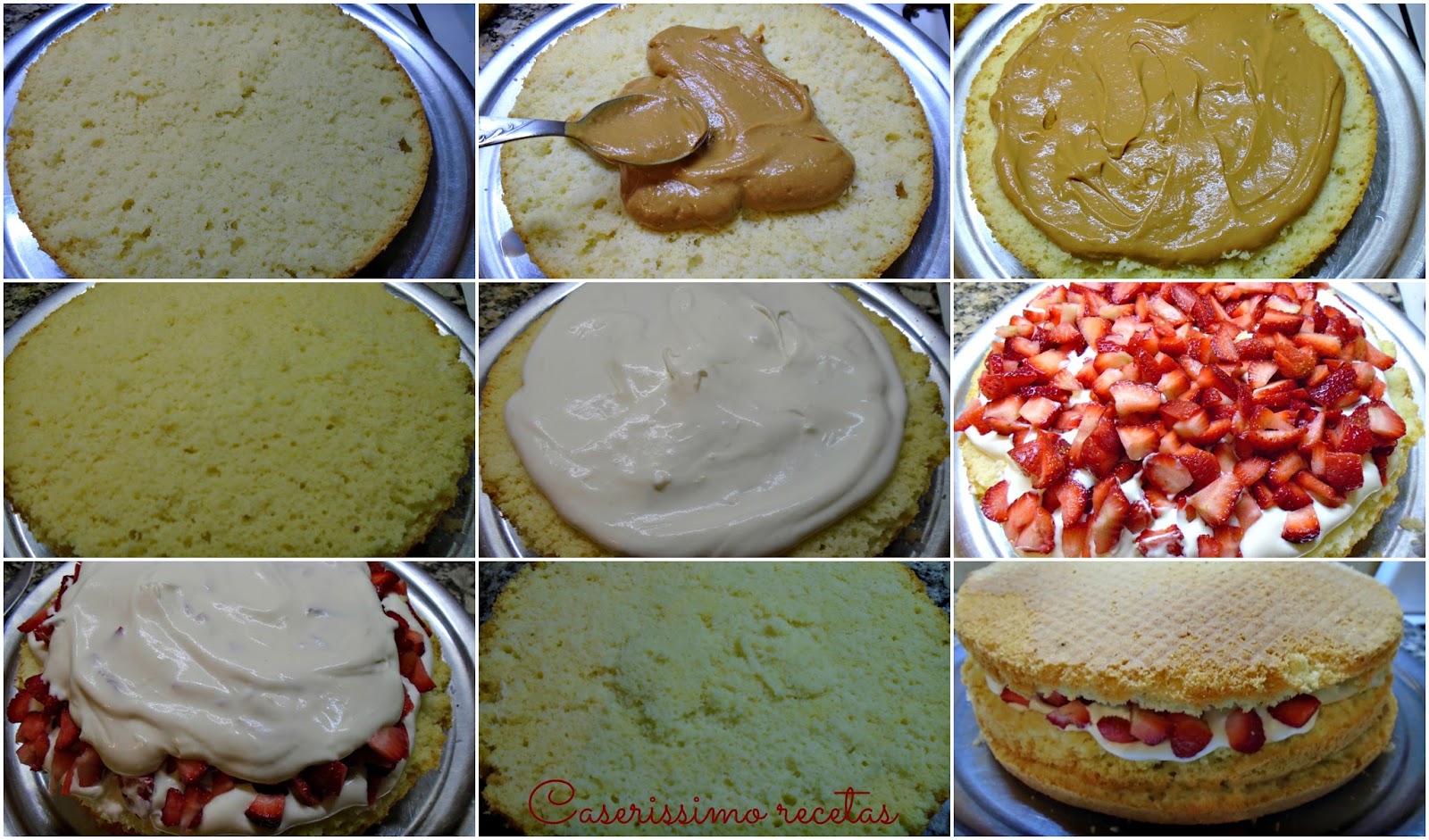 Ponemos la segunda capa de bizcochuelo y volvemos a embeber con leche o jugo diluido.