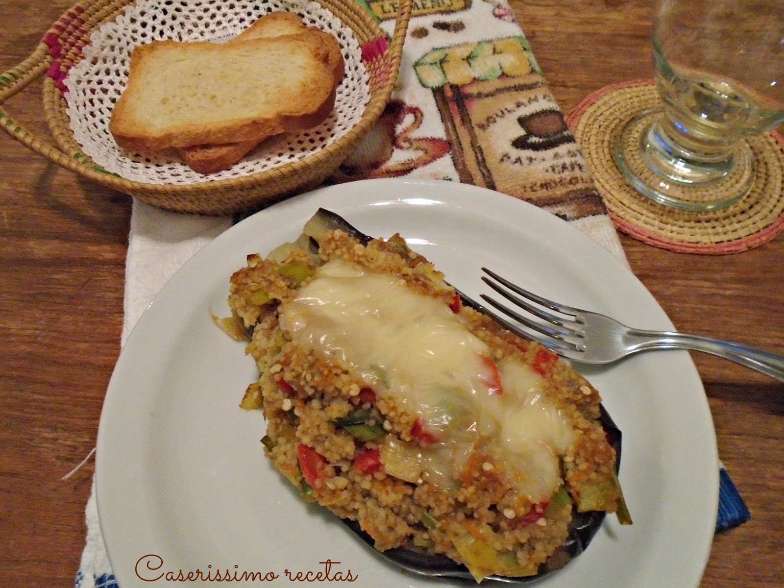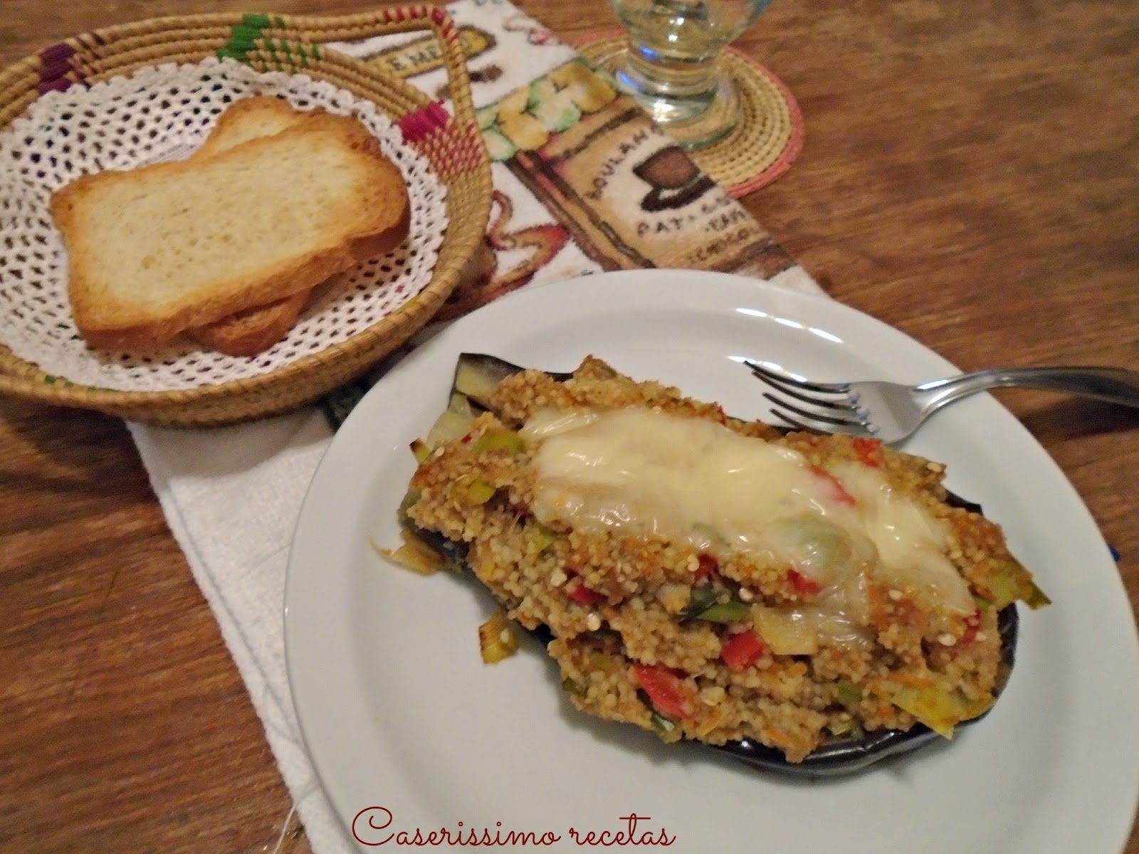 BERENJENAS LIGHT RELLENAS CON COUS COUS Y VEGETALES . Solo 185 kcal. por porción!!