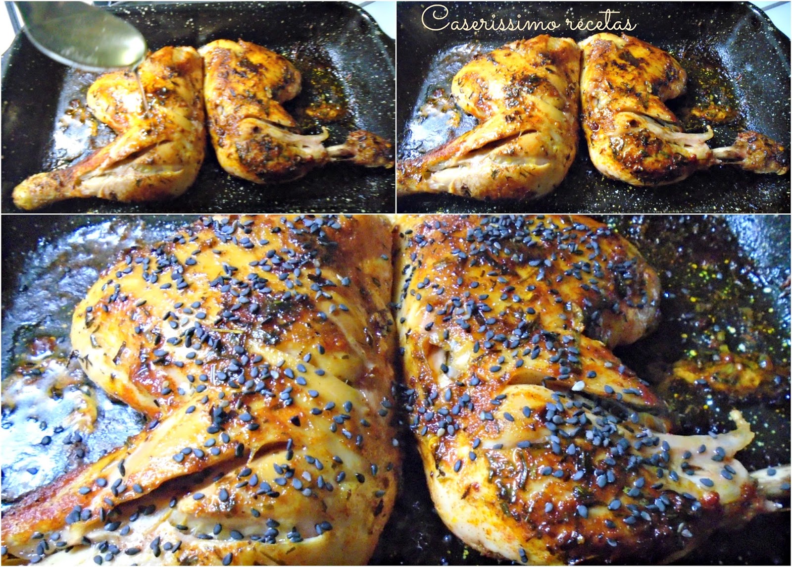 Retiramos, vertemos una cucharada de miel por presa y espolvoreamos sésamo negro.