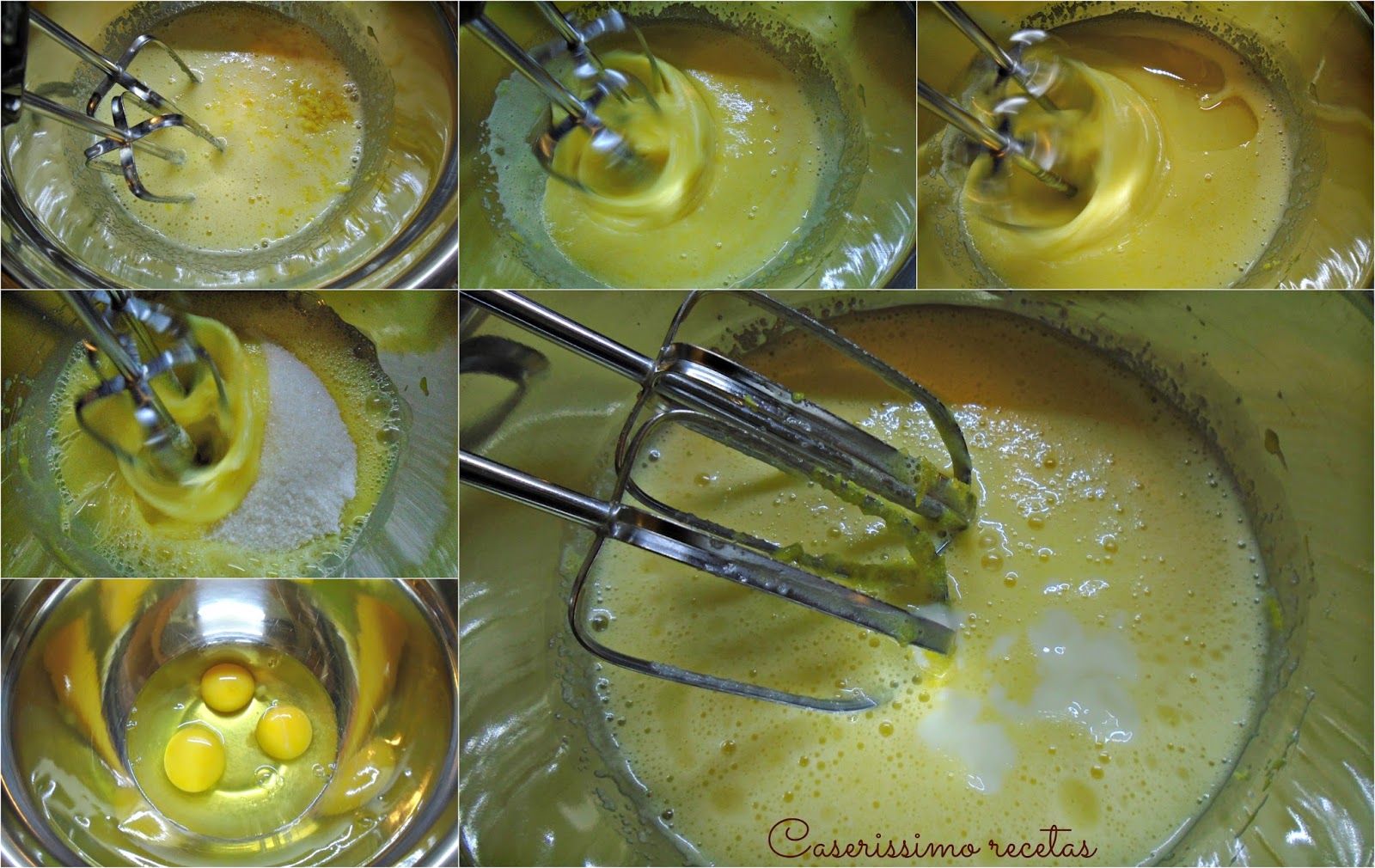 Agregar la ralladura, batir. Ahora el jugo, batir.