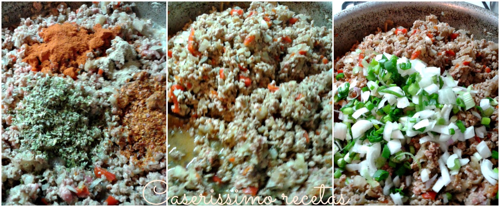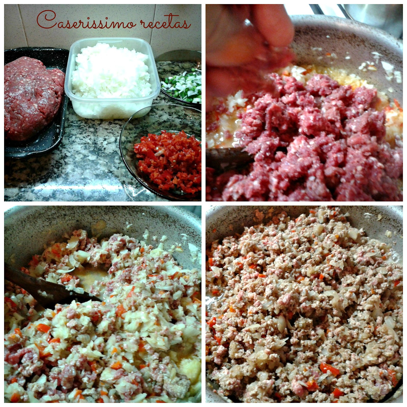 Agregar la carne picada, subir el fuego y revolver un poco, salar.