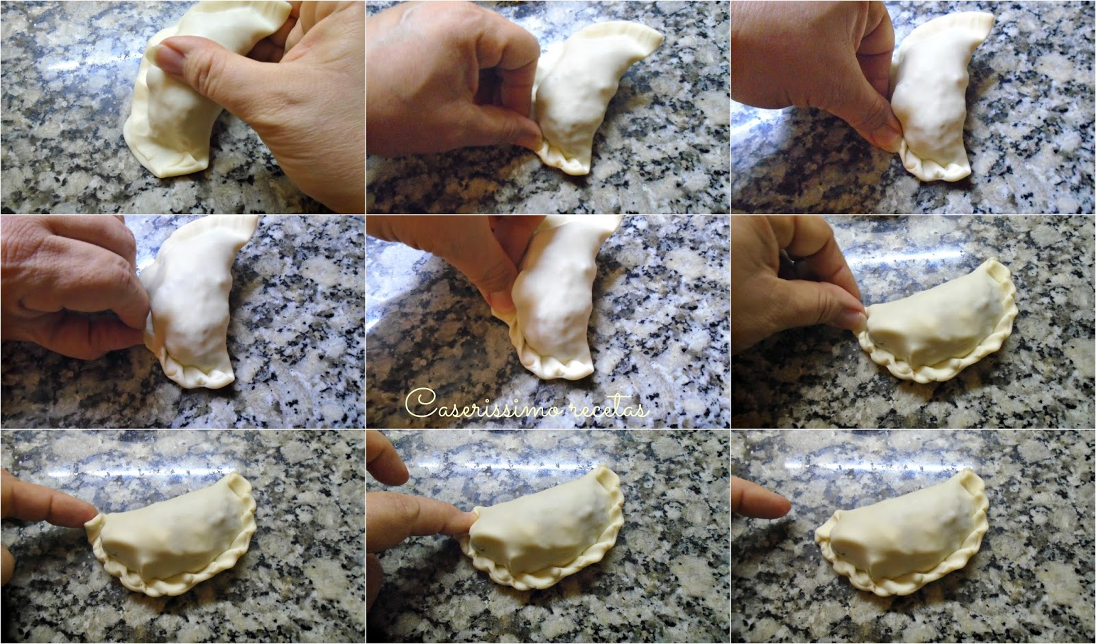 *Pasas y aceitunas.Estas son las tradicionales, pero pueden poner algunas otras cosas que gusten como ciruelas, nueces, etc.Intenté que las fotos fueran bien gráficas en cuanto a cómo hacer el repulgue, pronto haré videos que van a ser mas explicativos y agregaré a cada empanada.