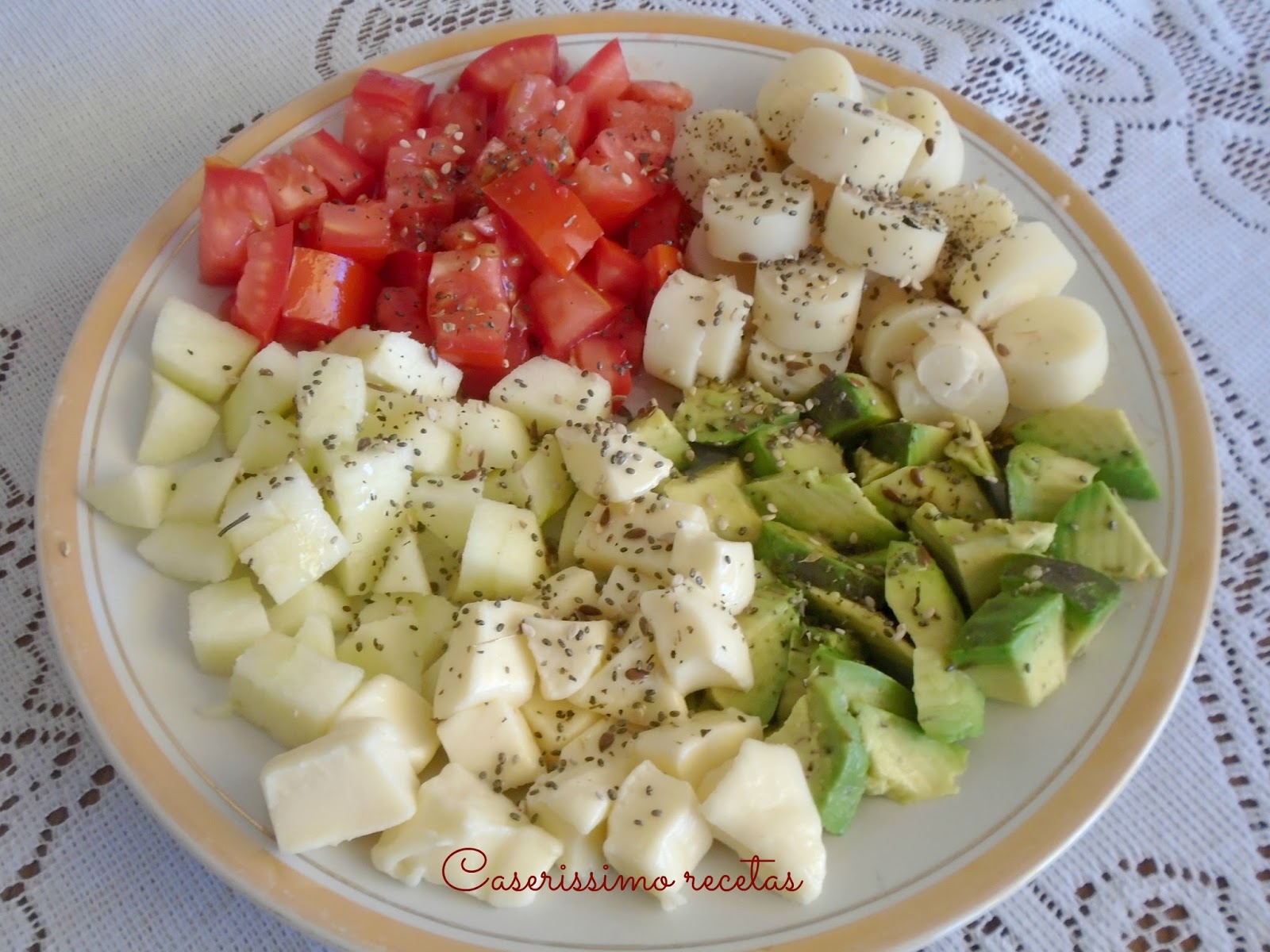 ENSALADA DE PEPINO, TOMATE Y QUESO CON ALIÑO