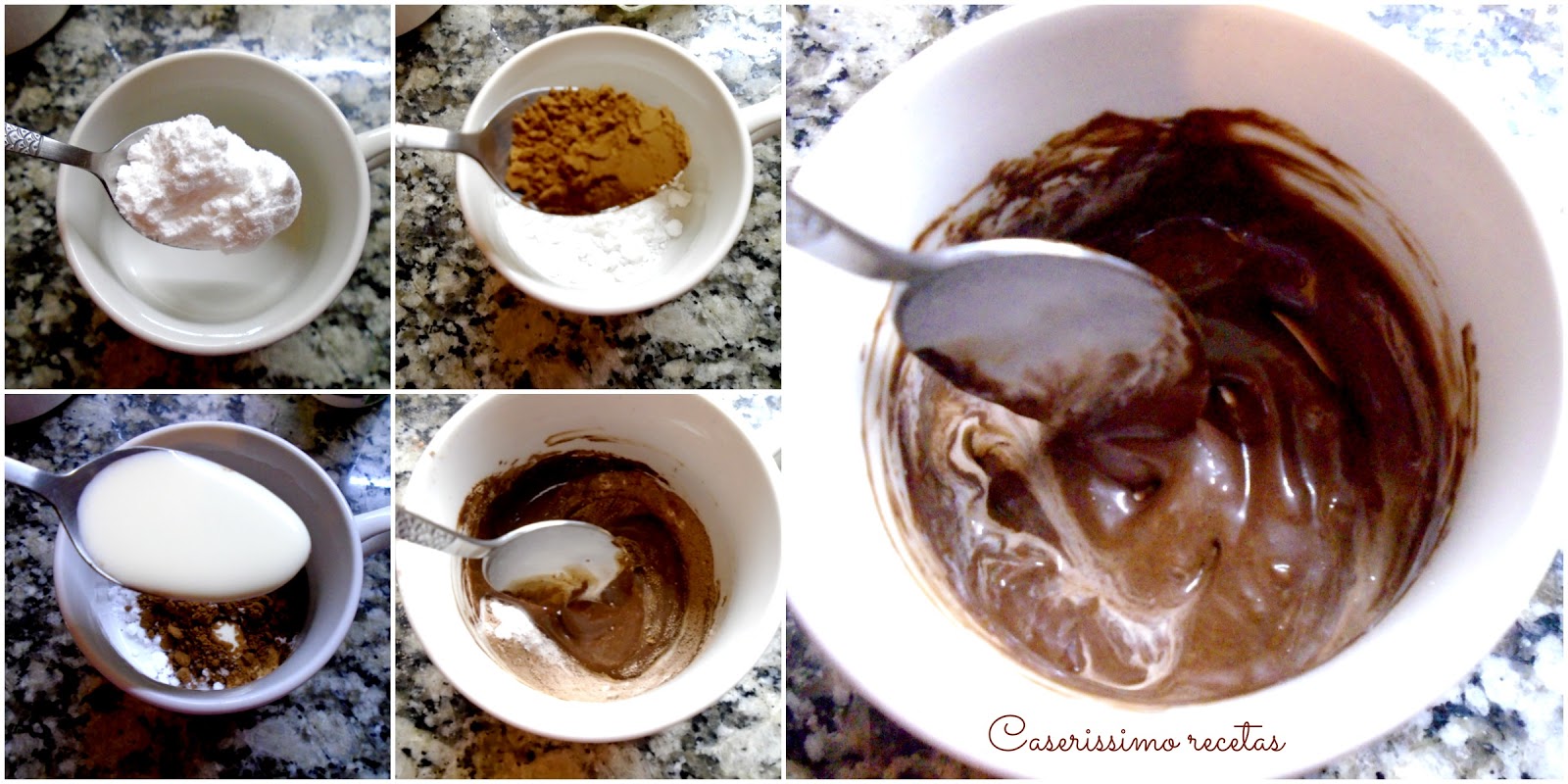Preparar la crema mezclando el azúcar impalpable, con el cacao y la crema.