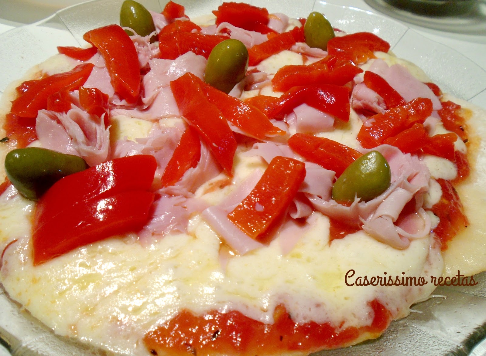 PIZZA 7 MINUTOS DE JAMÓN Y MORRONES -sin horno ni levadura-