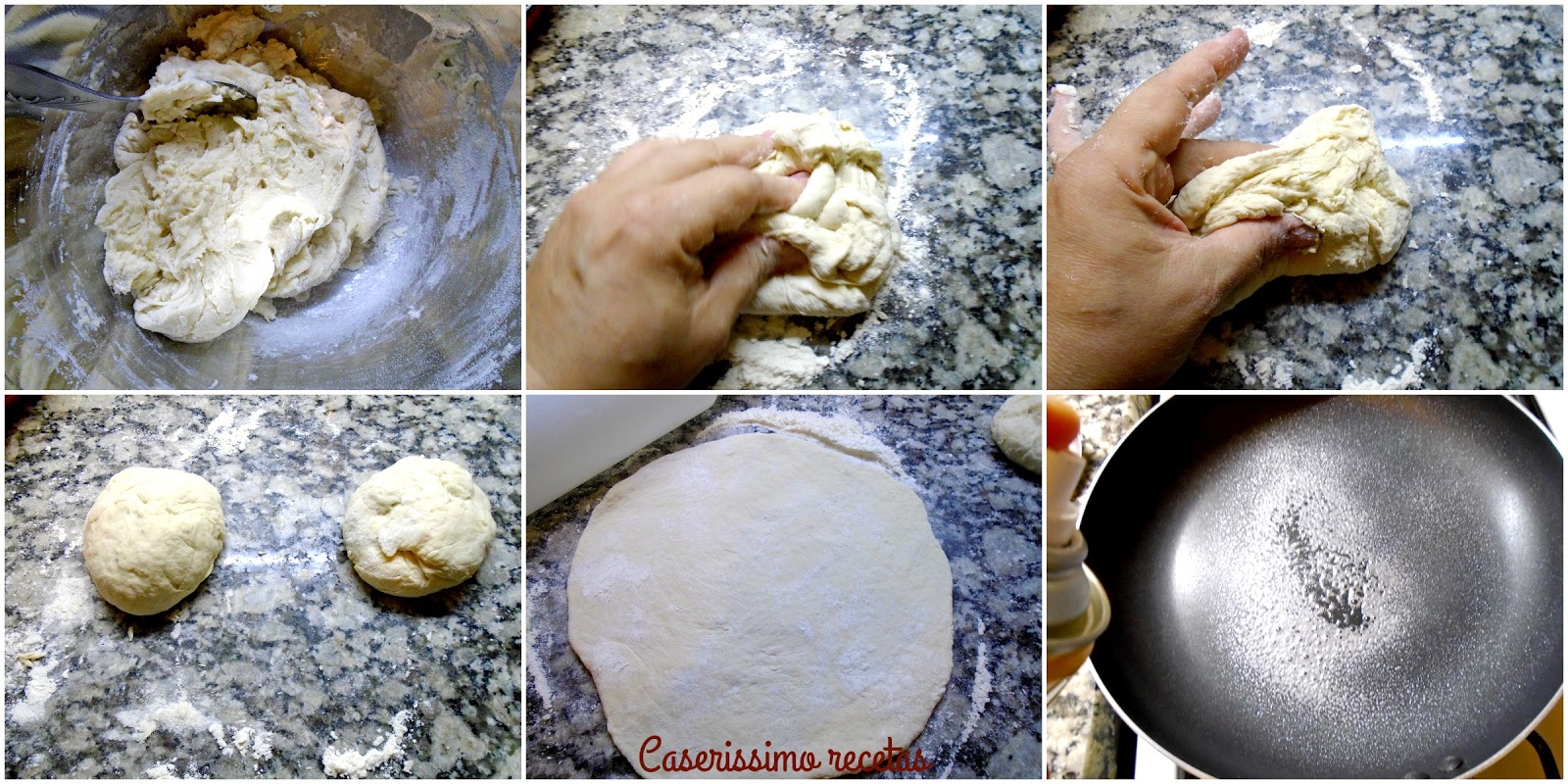 Mezclar hasta integrar. Luego amasar un poco en el bol y llevarla a la mesada enharinada. Solo amasar hasta integrar, es muy poco. Separar en dos bollos. Estirar con palote enharinado sobre mesada enharinada. Llevar a la sartén calentita y rociada con rocío vegetal o aceitada apenas. Yo la estiré mas alargada para distribuir mejor los vegetales.