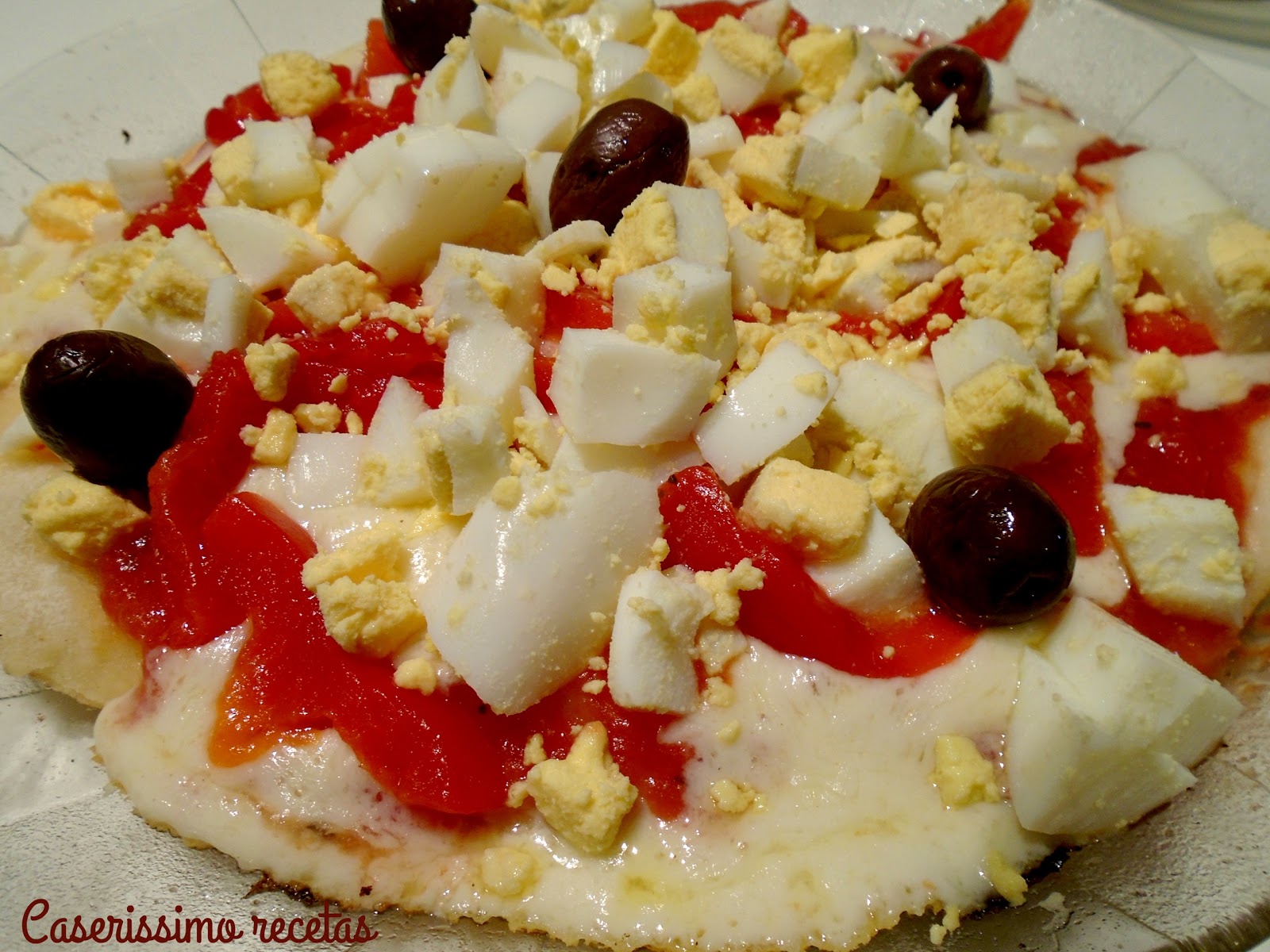 PIZZA 7 MINUTOS DE MORRONES Y HUEVOS - sin horno ni levadura -