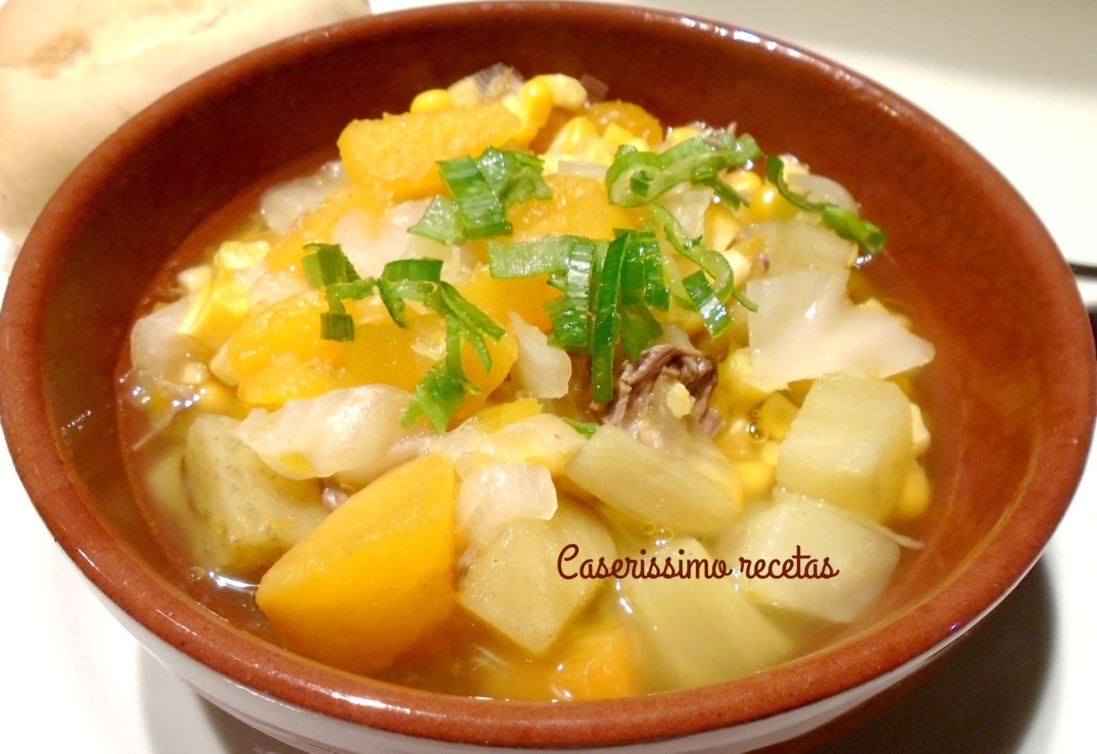 No lo conocía. Hace un par de meses iba paseando a mi perra y me puse a hablar con una señora muy simpática que estaba en la puerta de su casa con su perro. Esa señora, Marta, pasaba los 80 años y hablaba de su Tucumán con el mismo amor que hablaba de su familia, de sus hijos, de sus nietos. Se notaba que sabía cocinar muy bien y sobre todo, las típicas empanadas tucumanas que sus nietos le pedían. Me explicó bien esta receta que, según lo que me contó, en Tucumán, y otras provincias, se hace pero con choclo blanco que no se consigue en Buenos Aires y con zapallo plomo, no calabaza. Ella le agrega repollo y lo hice como me indicó, pero no todos, por lo que vi, le ponen. Y como en todo, hay versiones varias. Me dijo que nada iba frito, pero vi que la cebolla la freían todos y quise darle ese toque. Por lo demás es totalmente magro y sano. Solo va picante en la salsa como en el locro tradicional.. Vale la pena probarlo, lleva tiempo pero no da tanto trabajo.