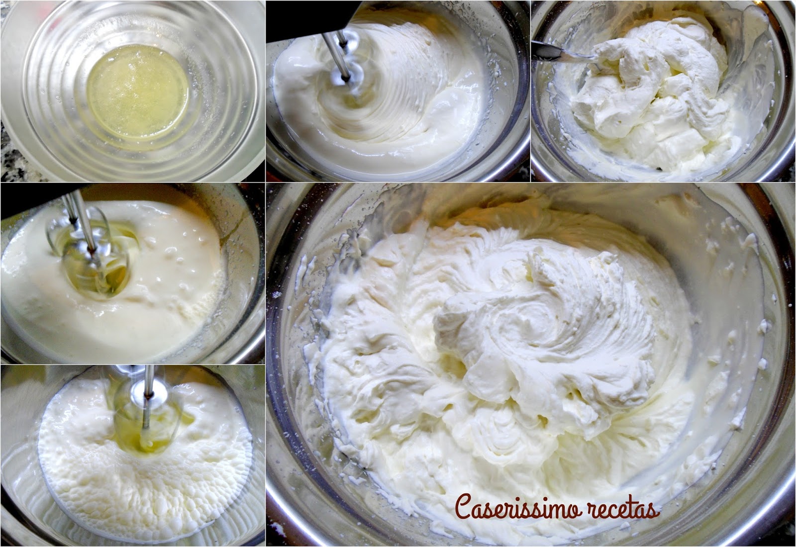 Batimos la crema que habremos tenido junto con las varillas y el bol en el freezer 10 minutos. Batirla hasta que comienza a espesar, agregamos de a poco el azúcar y batimos un poco mas. Añadimos la gelatina previamente puesta 30 segundos en la microondas. Debemos agregarla en forma de hilo e ir batiendo, OJO! QUE NO SE LES PASE DE PUNTO LA CREMA Y SE CORTE!!!!!