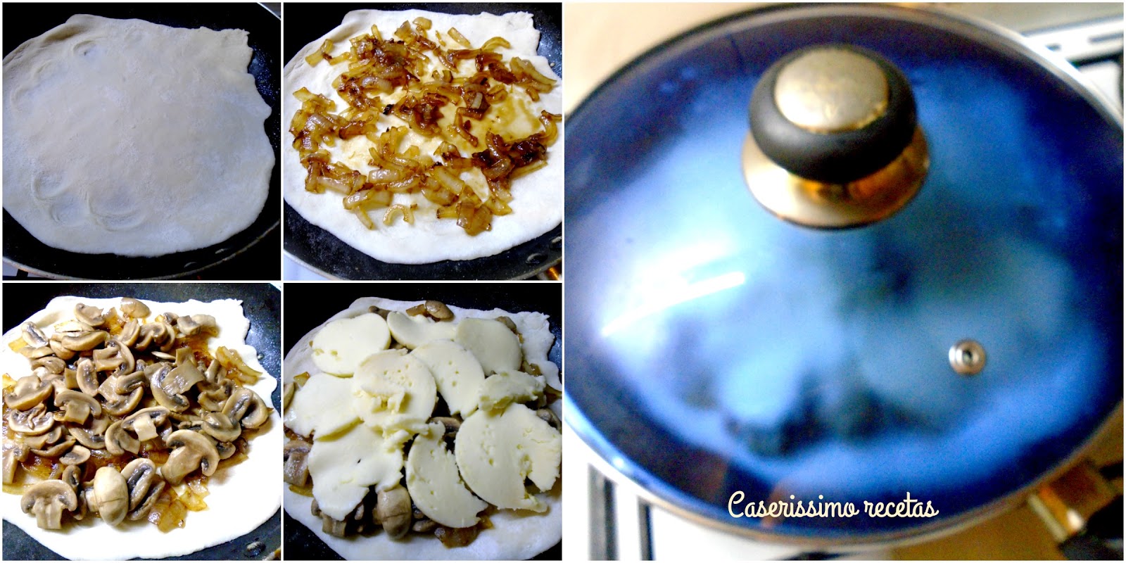 PIZZA DE CHAMPIGNONES EN SARTÉN EN 7 MINUTOS