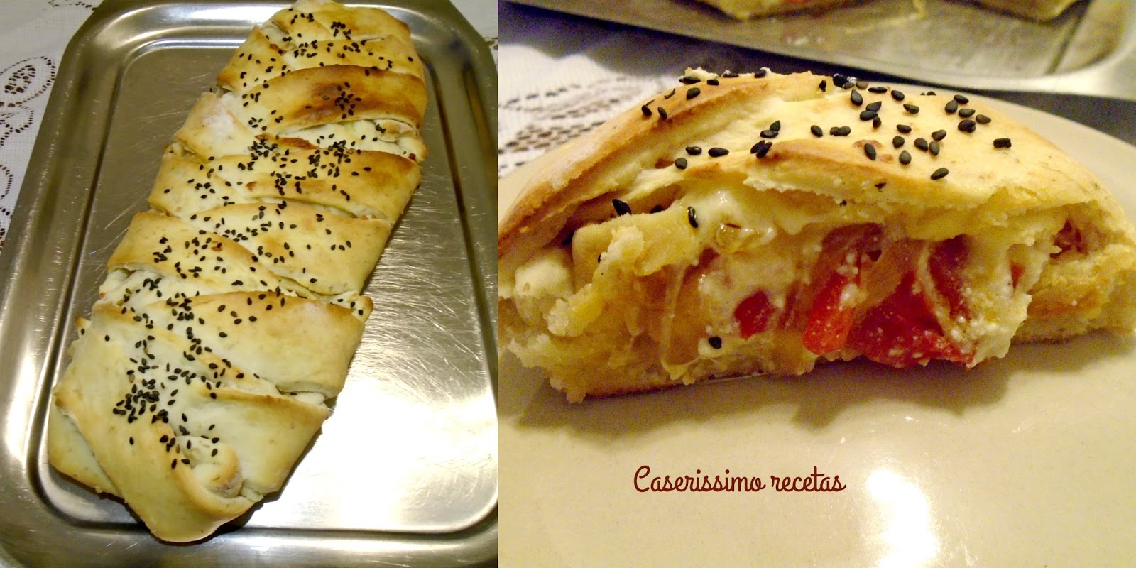 TRENZA DE RICOTA, JAMÓN, CEBOLLA Y MORRÓN CON MASA CASERA