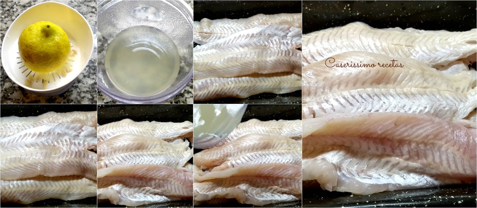Exprimimos los limones y colamos el jugo. Colocamos unos filetes en una fuente, agregamos jugo de limón ponemos el resto de los filetes y el resto del jugo.