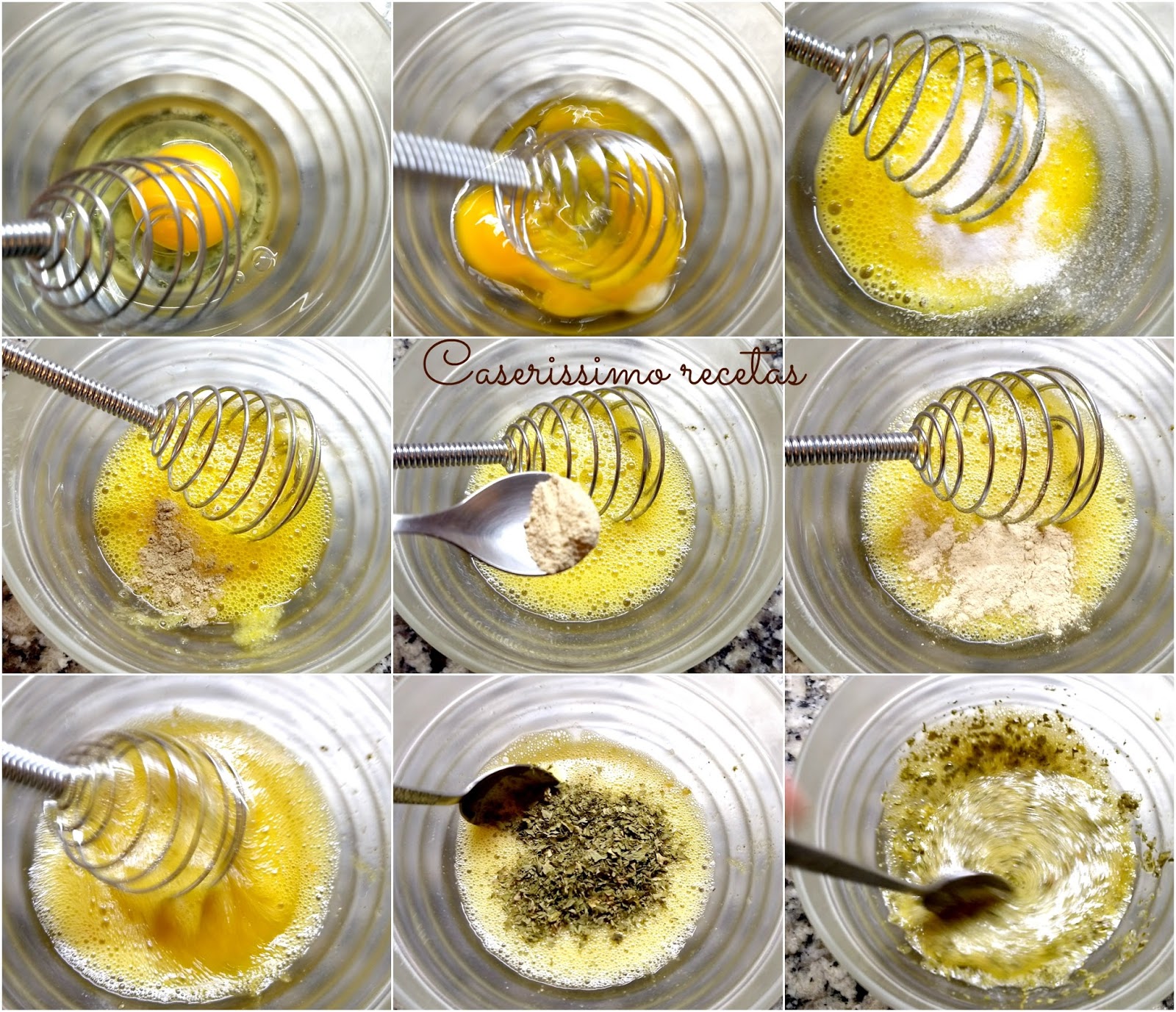 Batimos el huevo y le añadimos la sal, la pimienta, el ajo molido y el perejil. Mezclamos bien y lo vertemos sobre el pescado.