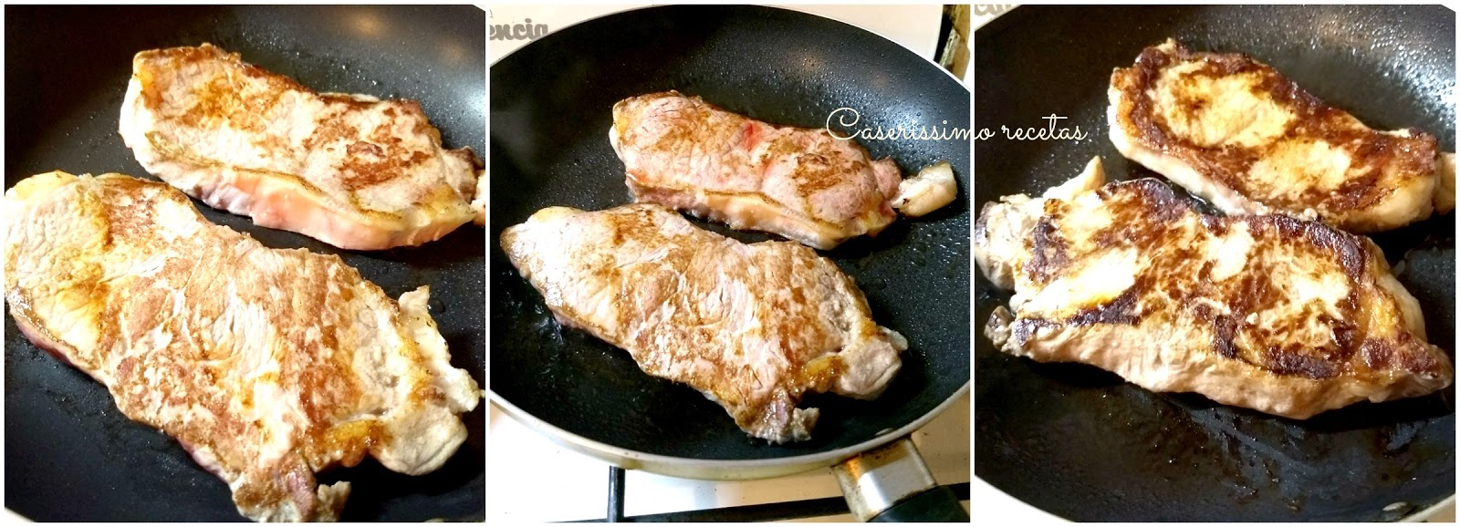 Una vez que está todo brilloso, colocamos el o los churrascos o bifes. Bajamos el fuego entre mínimo y medio dejamos dos minutos y damos vuelta. Dejamos dos minutos y volvemos a dar vuelta. Repetimos esto hasta lograr el punto que nos agrade.