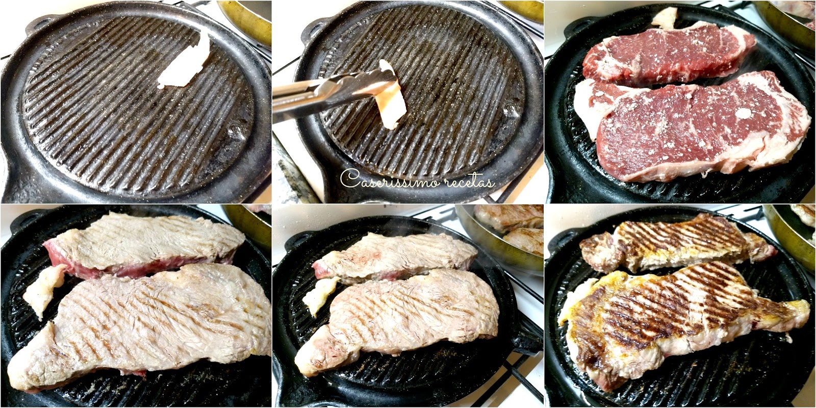 Podemos hacerlo en plancha bifera de fundición, que es la clásica, estriada su base y con canaleta en su perímetro para drenar la grasa o simplemente en una sartén antiadherente o la que tengan. También hay biferas estriadas de otros materiales como aluminio y teflón. O lisas, sin estrías. La variante la da que las que tienen estrías o canaleta permiten escurrir la grasa de la carne durante la cocción y las otras no. También el calor que emana una de fundición es mas importante que los de otros materiales. Pero se puede lograr igual un rico churrasco.