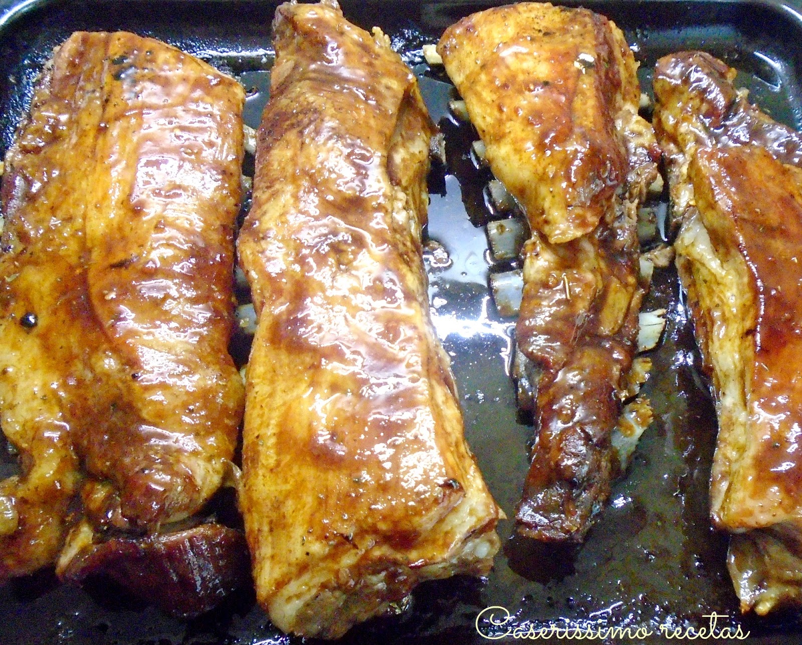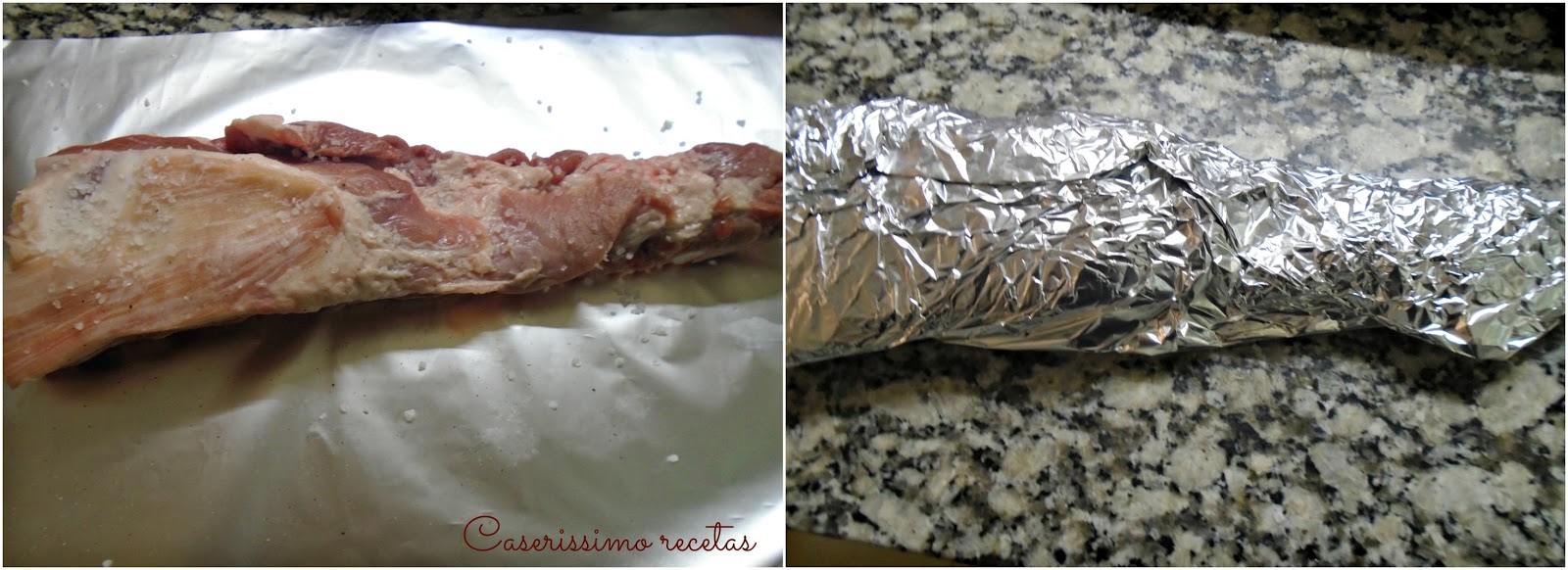 - 4 tiras de pechito de cerdo con manto (sino son solo las ribs, las costillas)