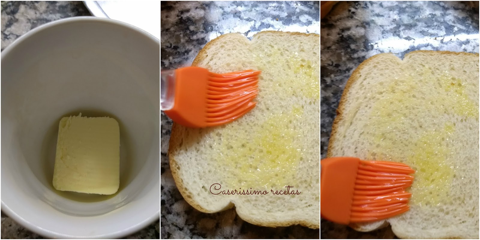 Derretir la manteca y pintar los panes de un lado solo. Llevar al horno en bandeja con la cara pintada hacia abajo. Dorar apenas. Hacer la salsa blanca.