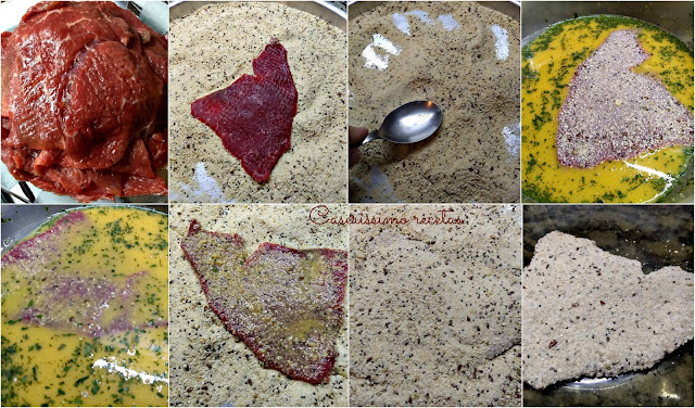 - 1 kilo de carne para milanesas (nalga como en mi caso, bola de lomo, cuadrada o peceto)